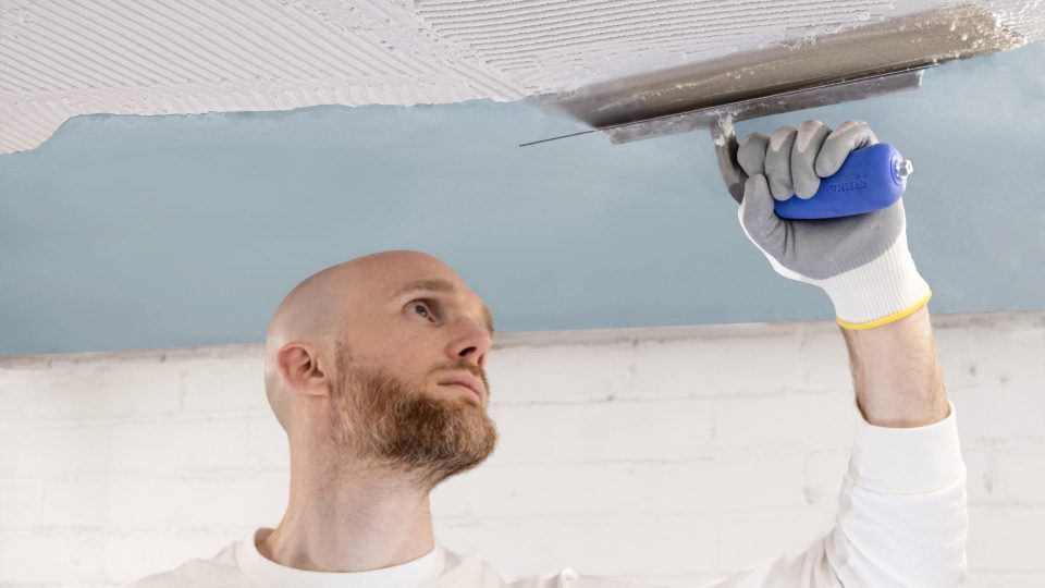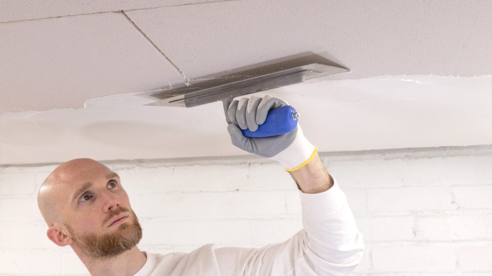 A seamless layer of acoustic undercoat plaster is applied, unifying the surface.