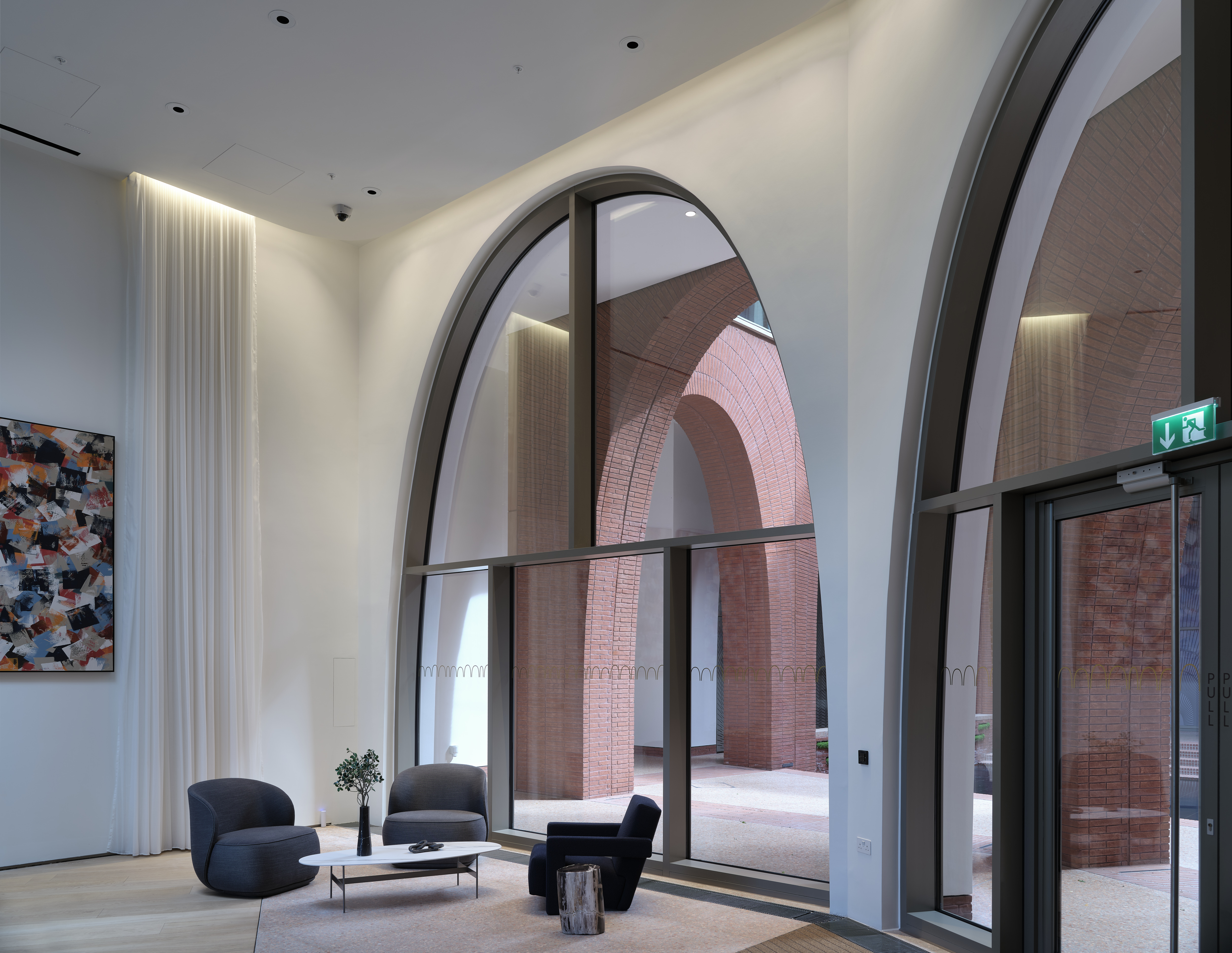 Pre-coated acoustic panels are installed alongside any required details for services.