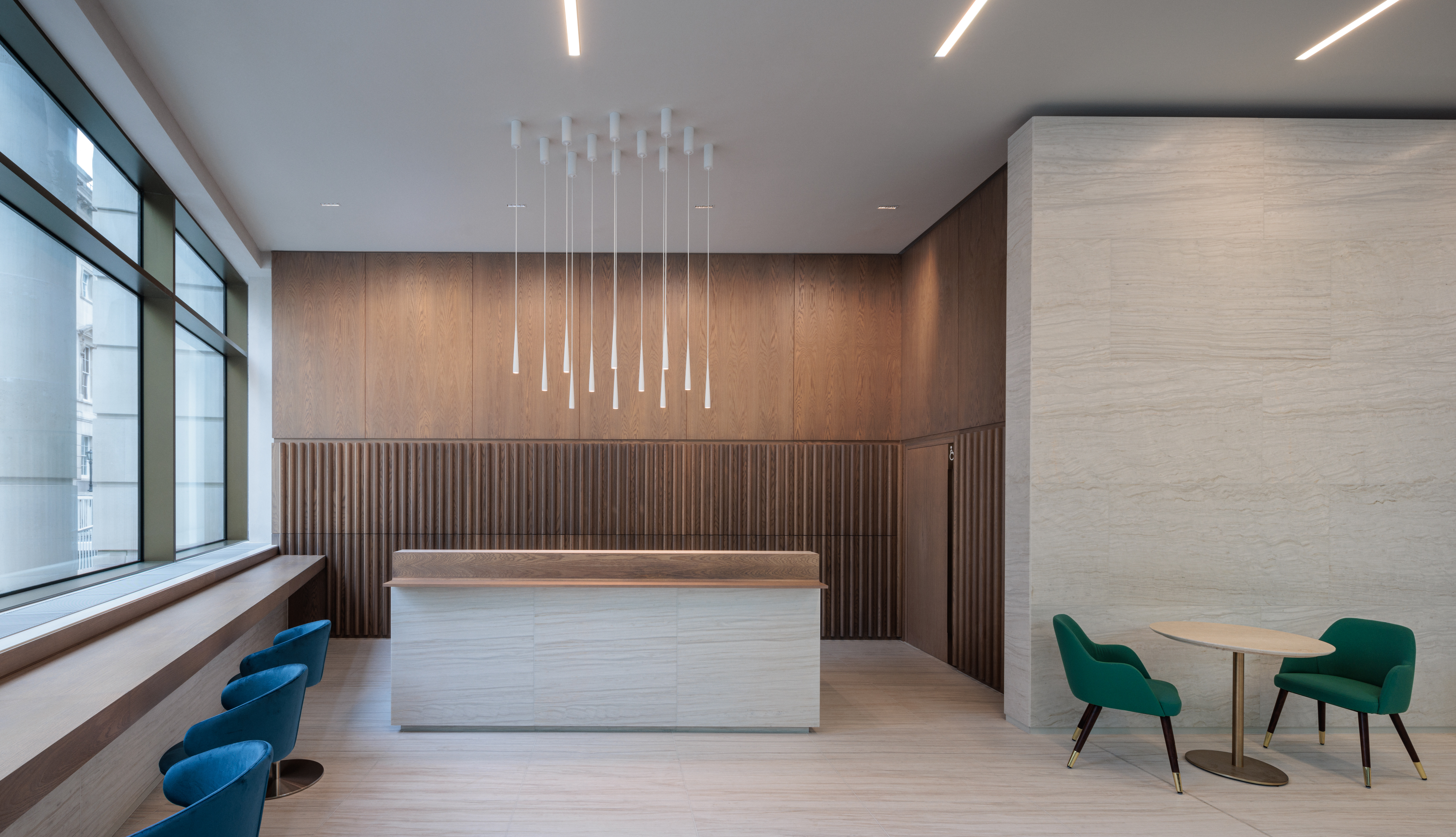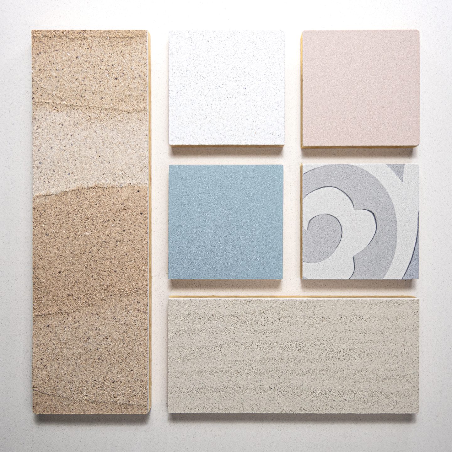 Our marble-based acoustic topcoat plaster is hand applied in the specified finish.