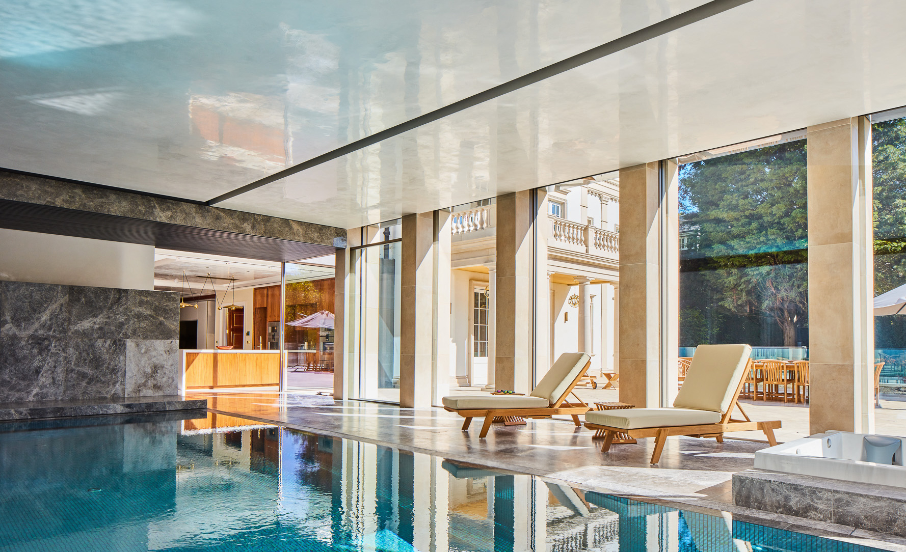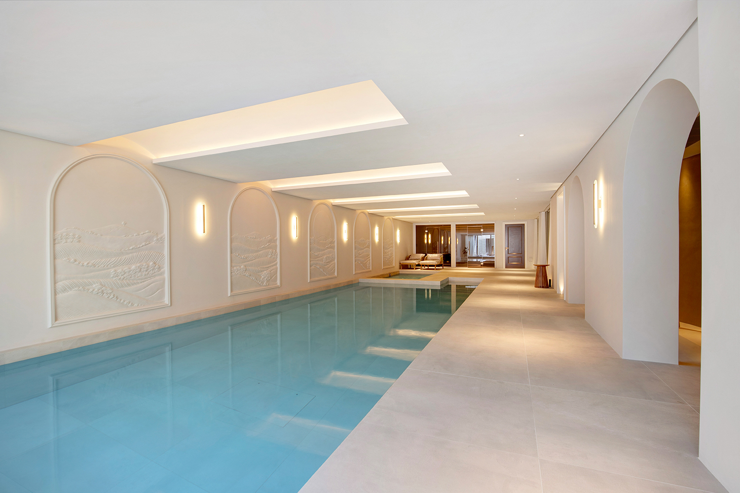 Sculptural Plaster Flow design used along the full length of the pool in a luxury spa refurbishment