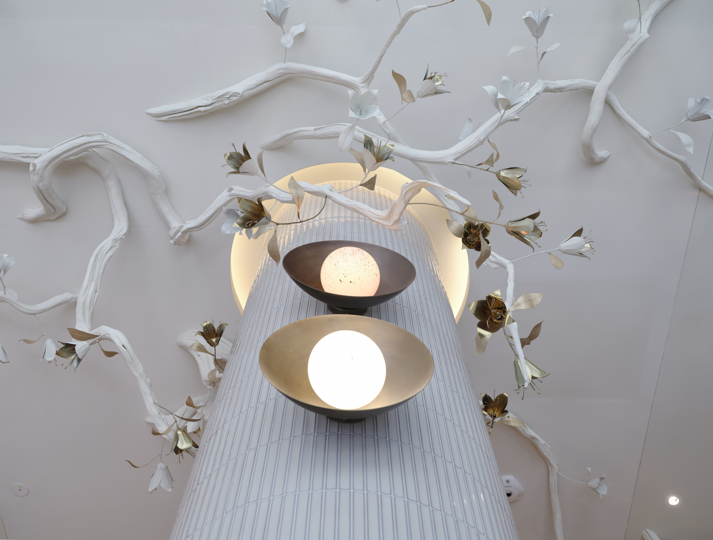Elevator lobbies within The BoTree Hotel finished in a Polished Plaster Spatulata.