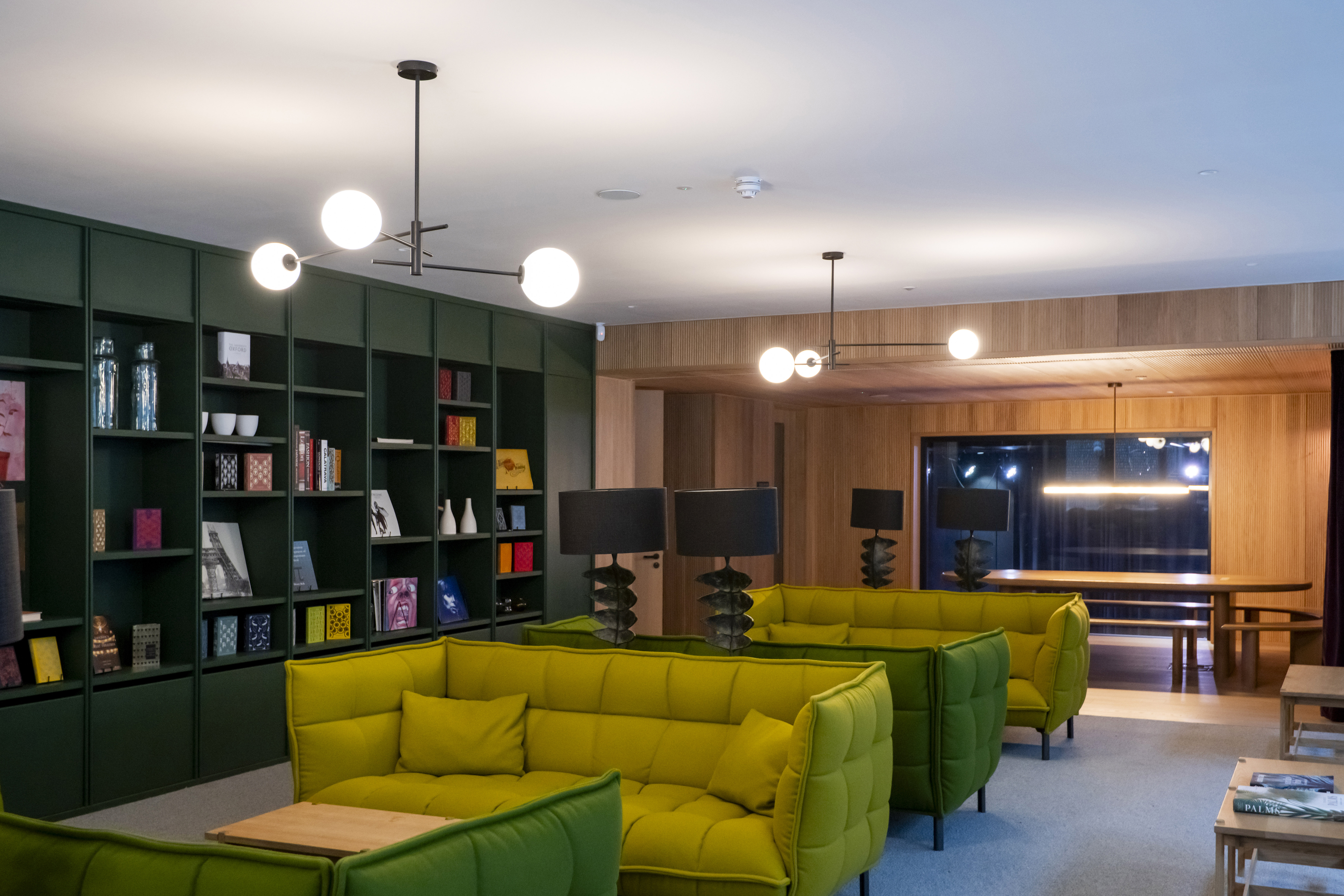 Acoustic Plaster used on the ceilings of a communal space within the residential Cadence building.