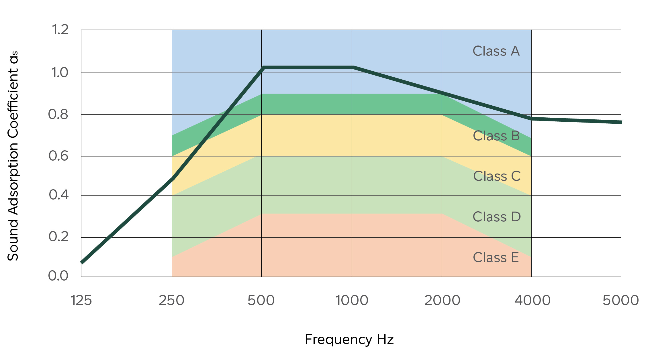 A Weighted Sound Absorption Coefficient of 0.95 was achieved when the 48mm Acoustic Plaster System – Fine was independently tested to European Standard EN ISO 354.